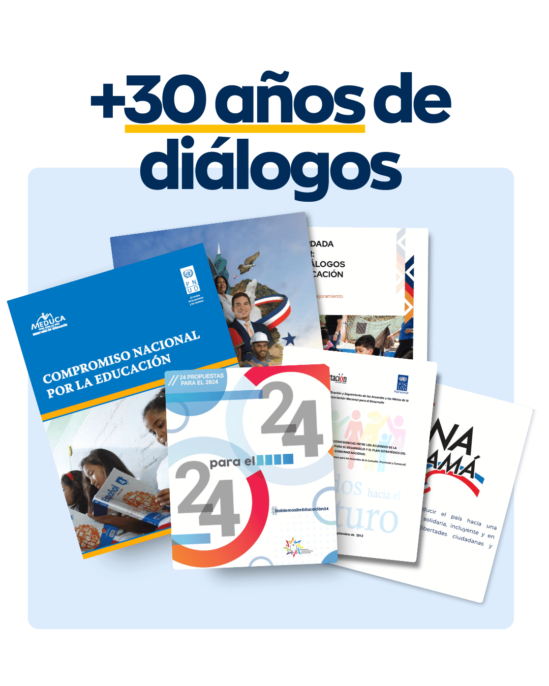 En 2016, con liderazgo del Presidente Juan Carlos Varela y facilitación del PNUD, se instaló la Mesa de Diálogo: Compromiso Nacional por la Educación. Participaron 8 sectores clave: MEDUCA, Gremios de Educadores (UNEP, UNECEP), Padres de Familia, Estudiantes, Consejo de Rectores, CoNEP, CONATO, y ONGs educativas.
